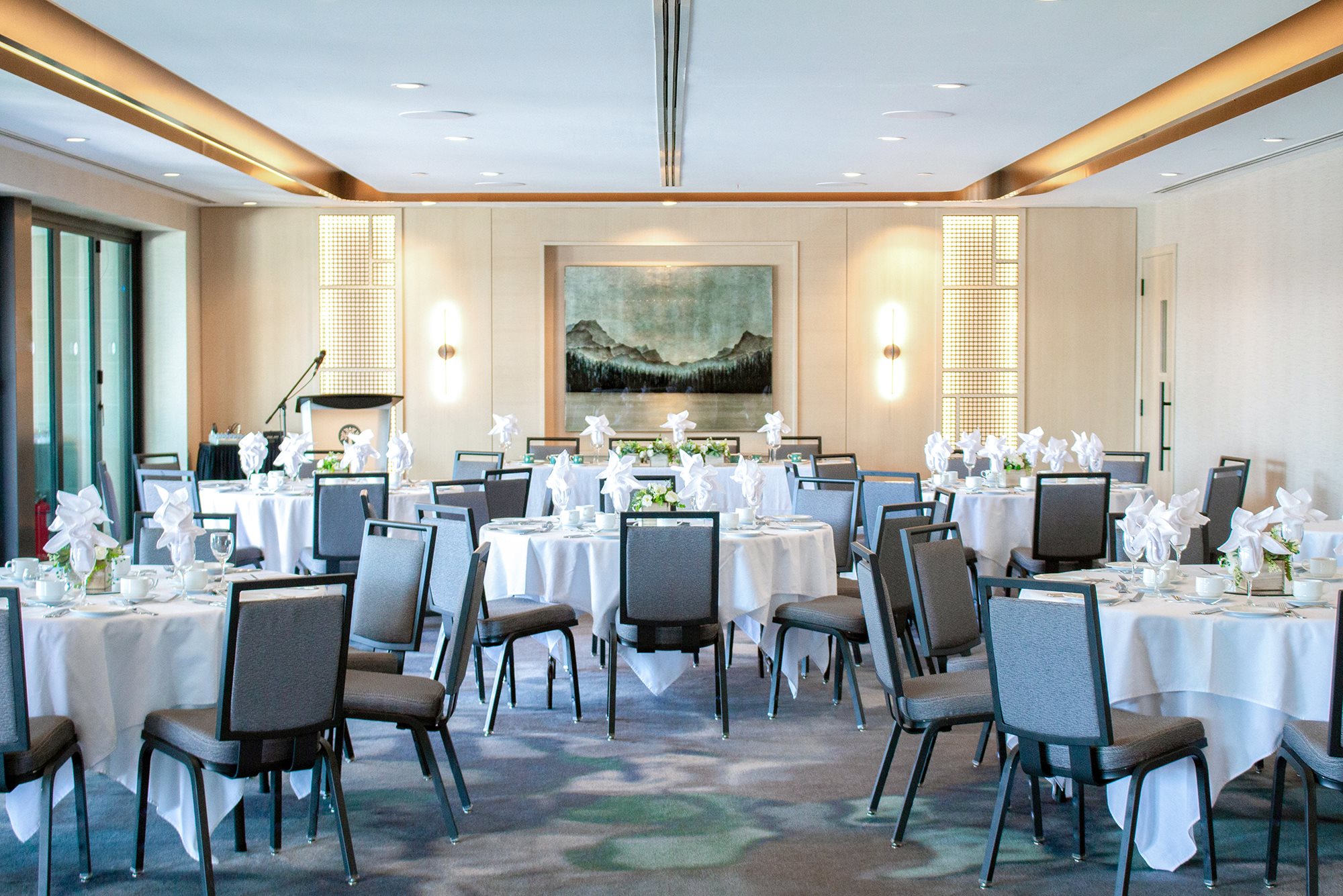 Nestled in the heart of the Club, the Strathcona Room is the perfect location for any occasion. Decorated in soft earthtones, the Strathcona Room is the perfect balance between design and function. The room can be arranged for a night of celebration or an afternoon of high productivity. We are here to meet your needs.